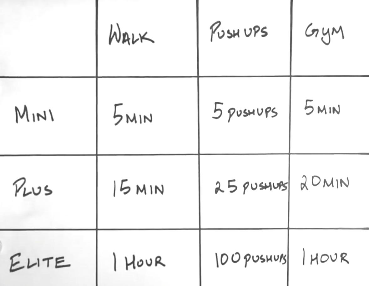 And when you build that plan, you will commit to doing at least the basic level of one of these activities, knowing that this is the minimum effort you are required to do in a day to get closer to your ultimate goal.